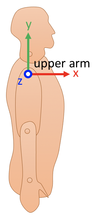 The origin of the upper arm coordinate system is located at the shoulder;
